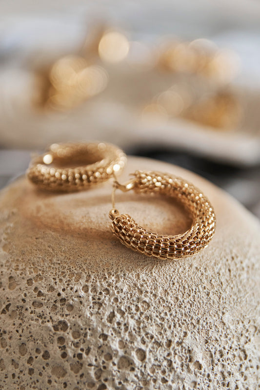 Desde argollas chunky hasta piezas delicadas: nuestros aretes dorados son el balance perfecto para elegancia.