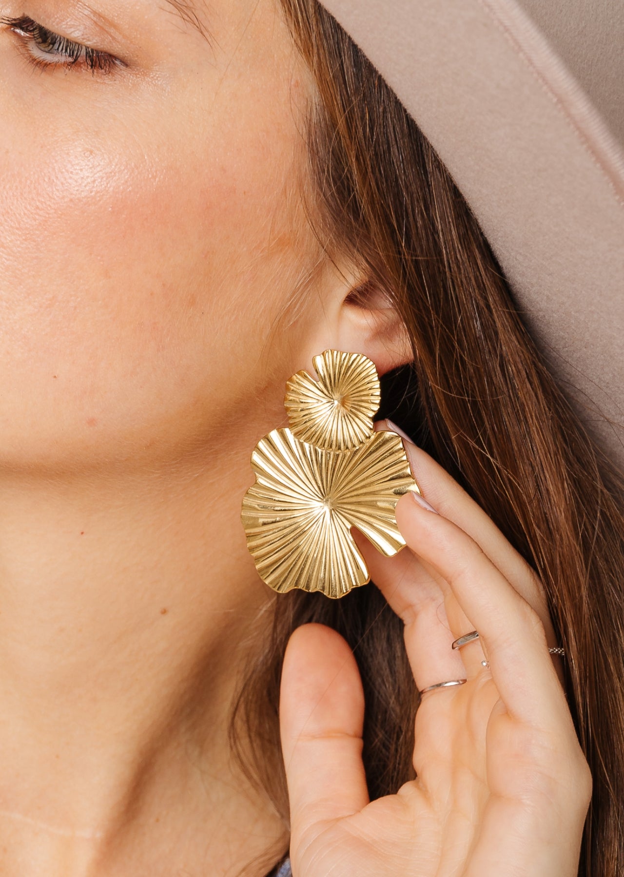 Arete de flor, con un acabado de acero bañado ideal para acompañar y elevar tu outfit.