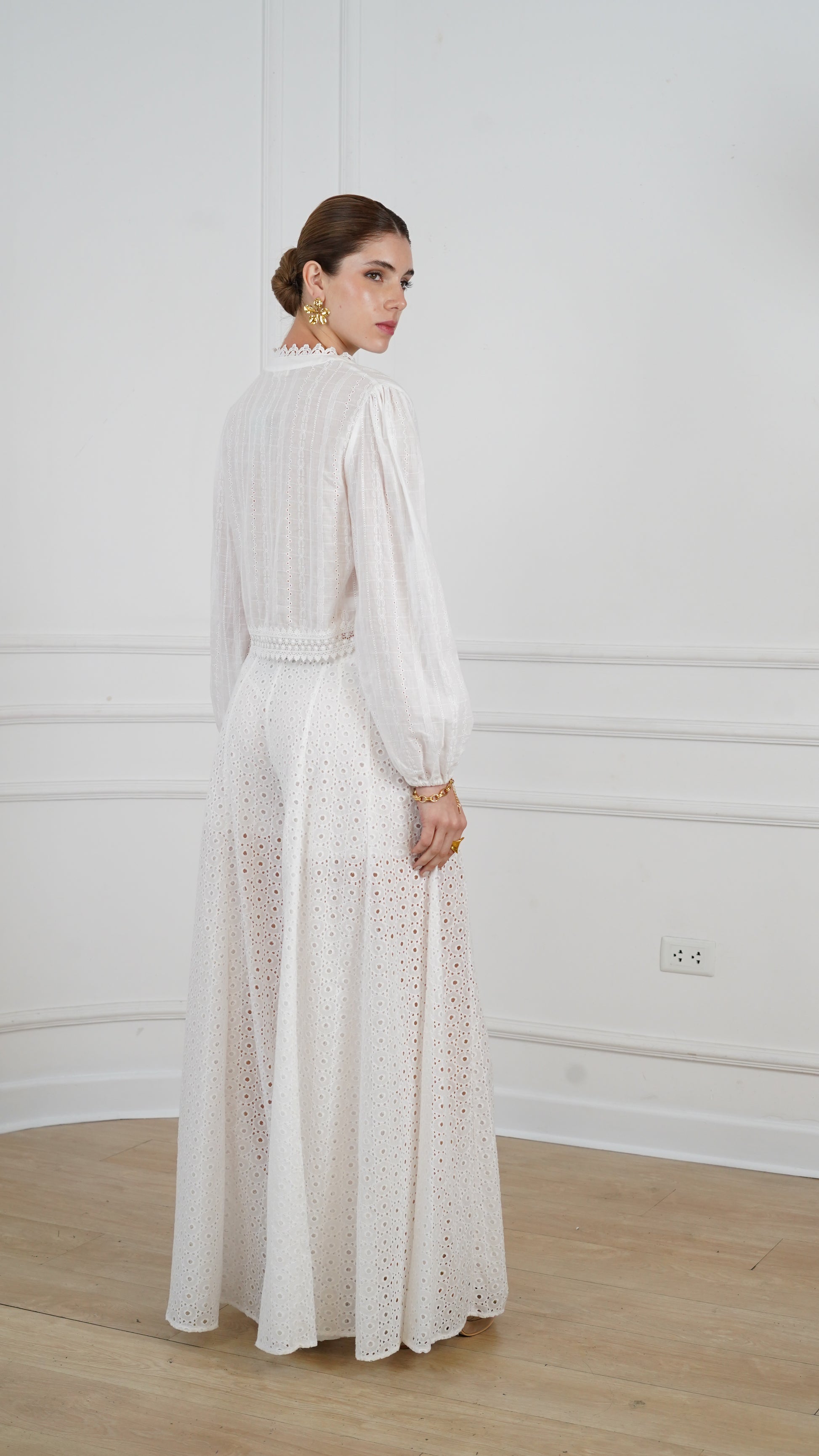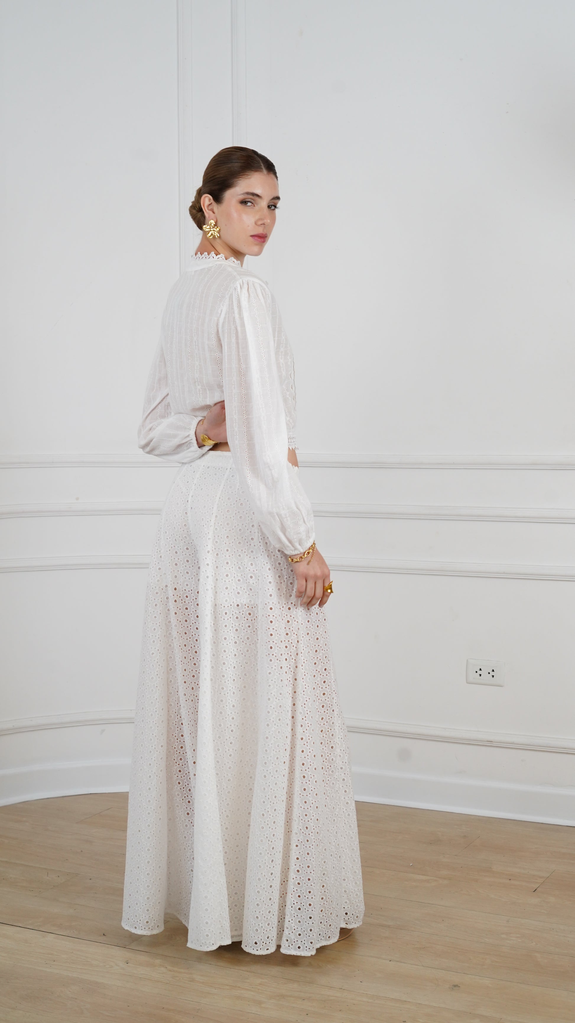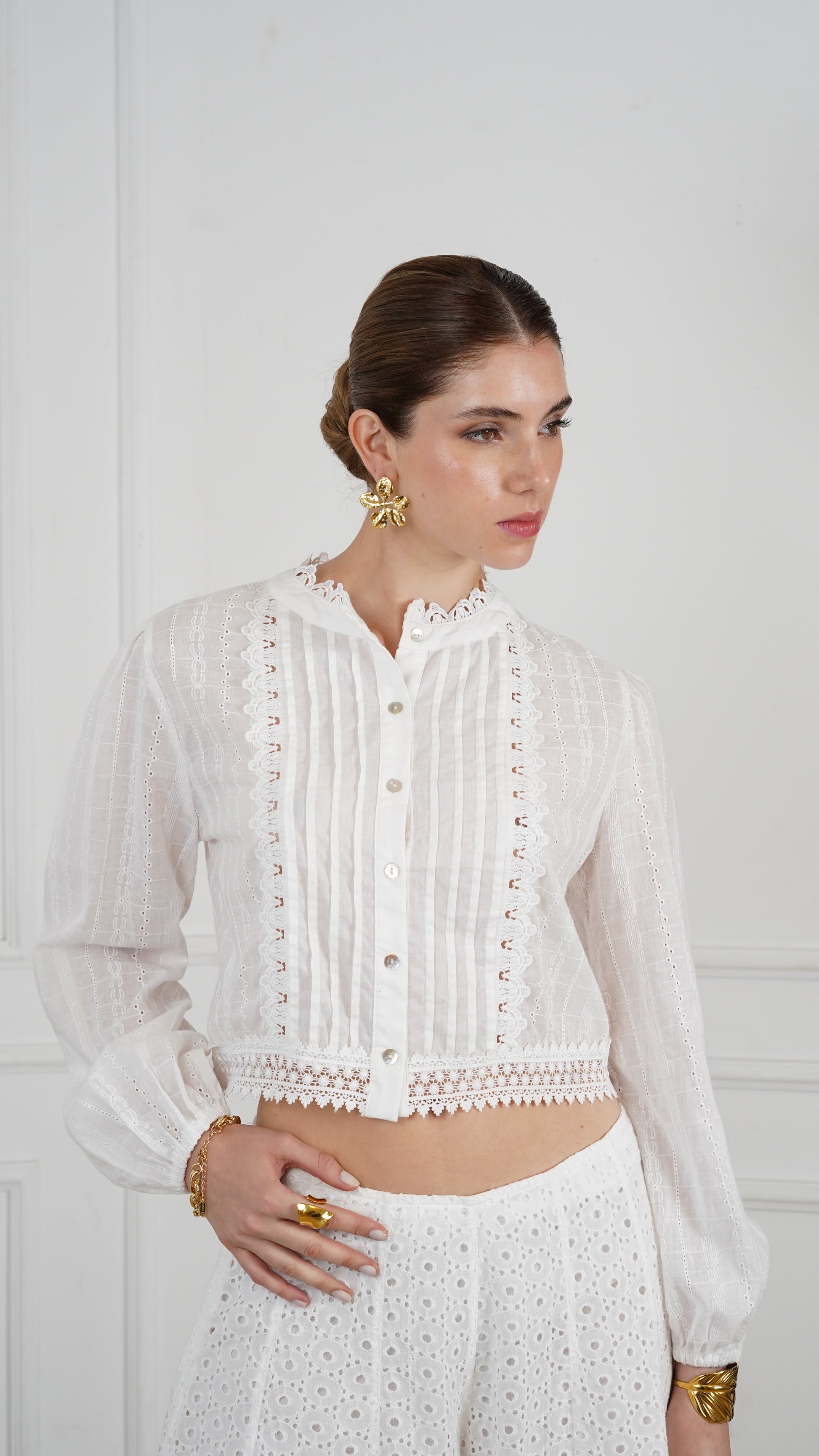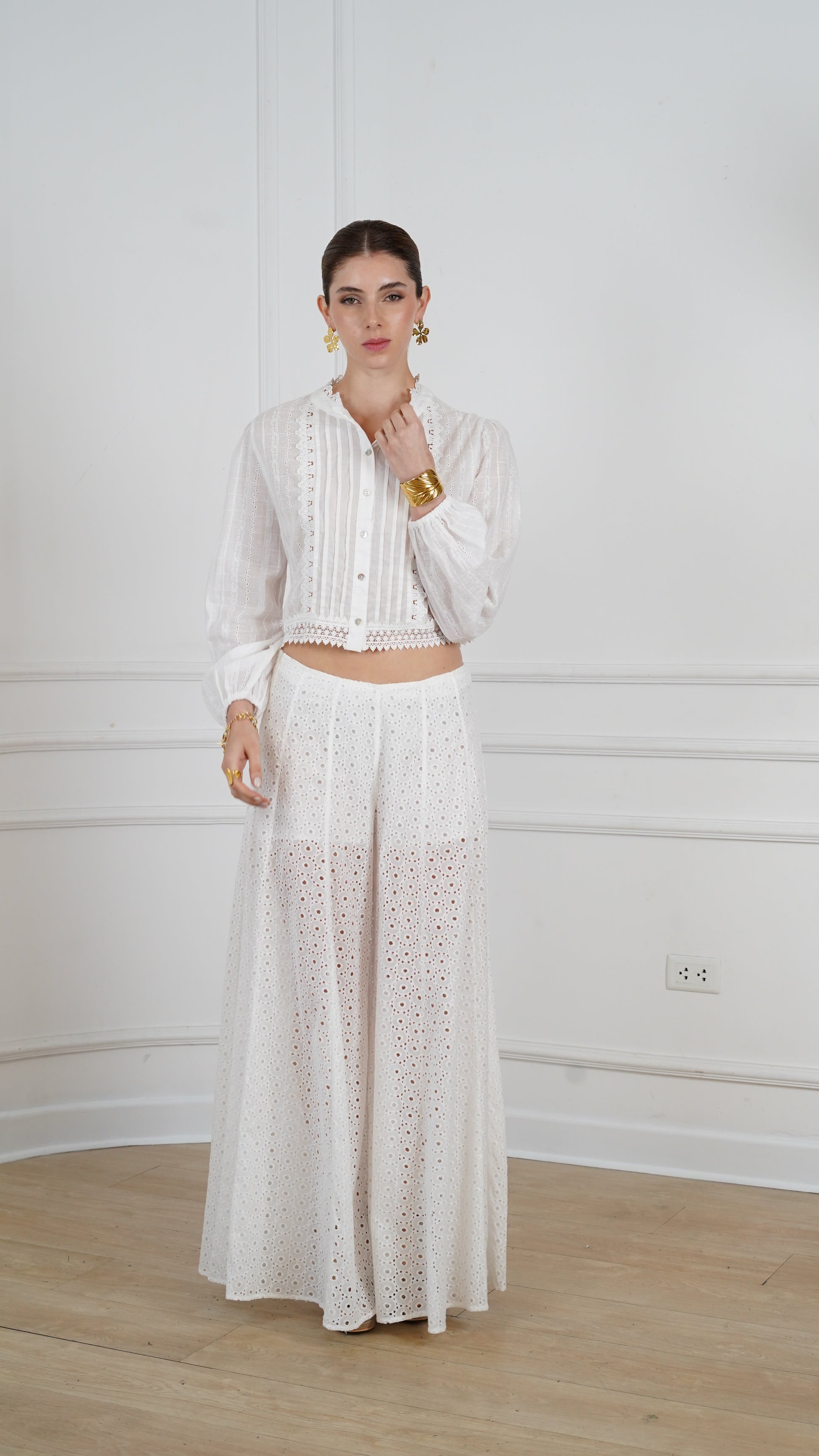 El pantalón Nina combina frescura y sofisticación con su delicado bordado inglés. Su tono blanco y su diseño atemporal lo convierten en la pieza perfecta para un look elegante y versátil. Ideal para combinar con blusas ligeras o tops estructurados, siempre aportando un toque de romanticismo y estilo effortless.