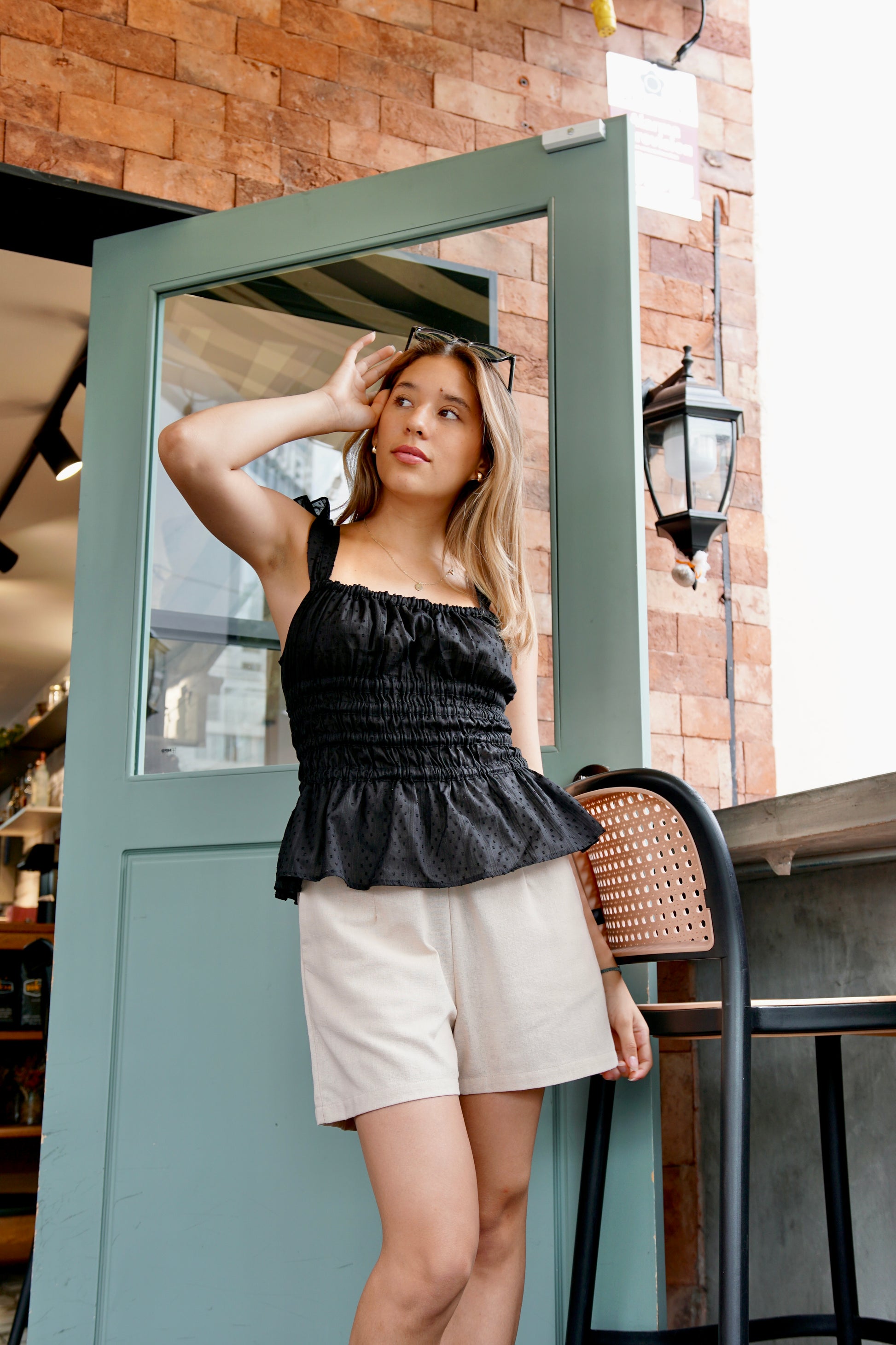 Blusa con detalles hermosos en los hombros, combínalo para diferentes ocasiones. Ajustable en la parte de la cintura.