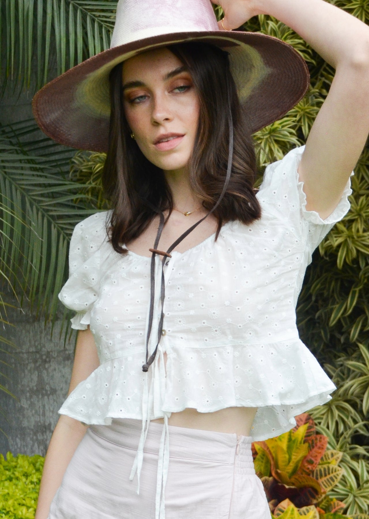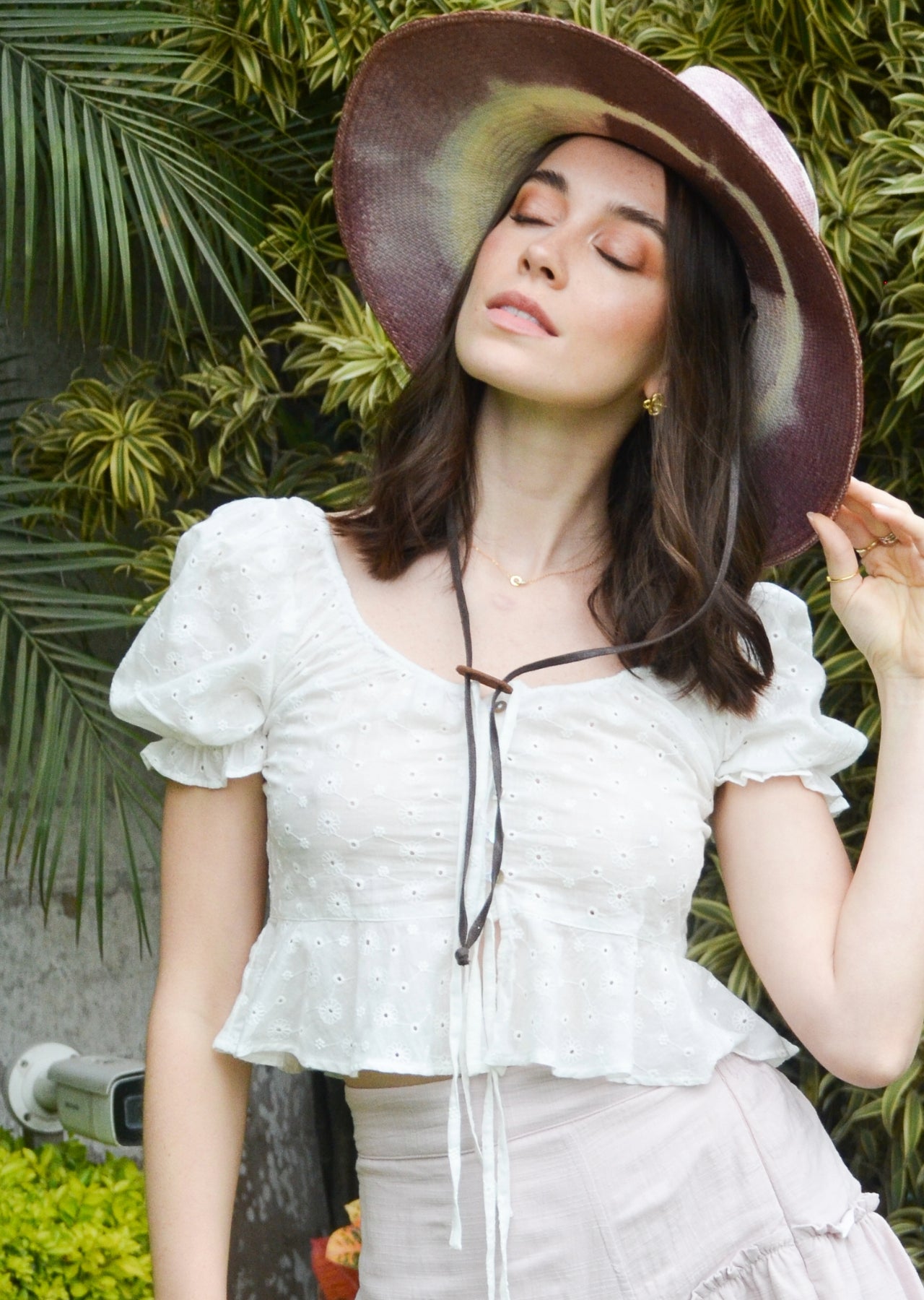 Top ligero con diseño romántico y moderno. Confeccionado en un tejido fresco y suave, ideal para los días cálidos. Su silueta sutilmente estructurada y su caída delicada lo convierten en una pieza versátil para elevar cualquier look. Combínalo con faldas o pantalones para lograr un estilo relajado pero sofisticado.