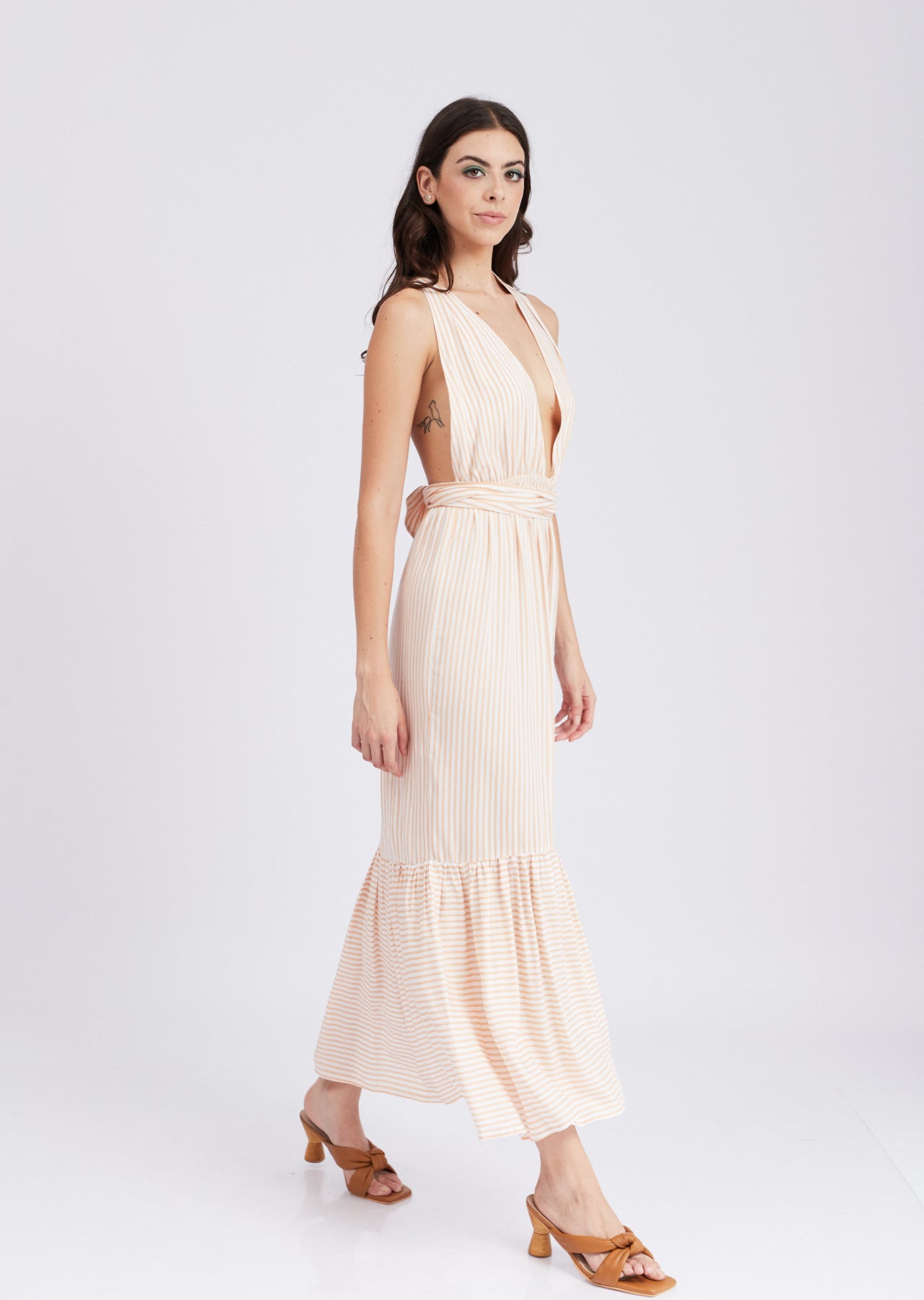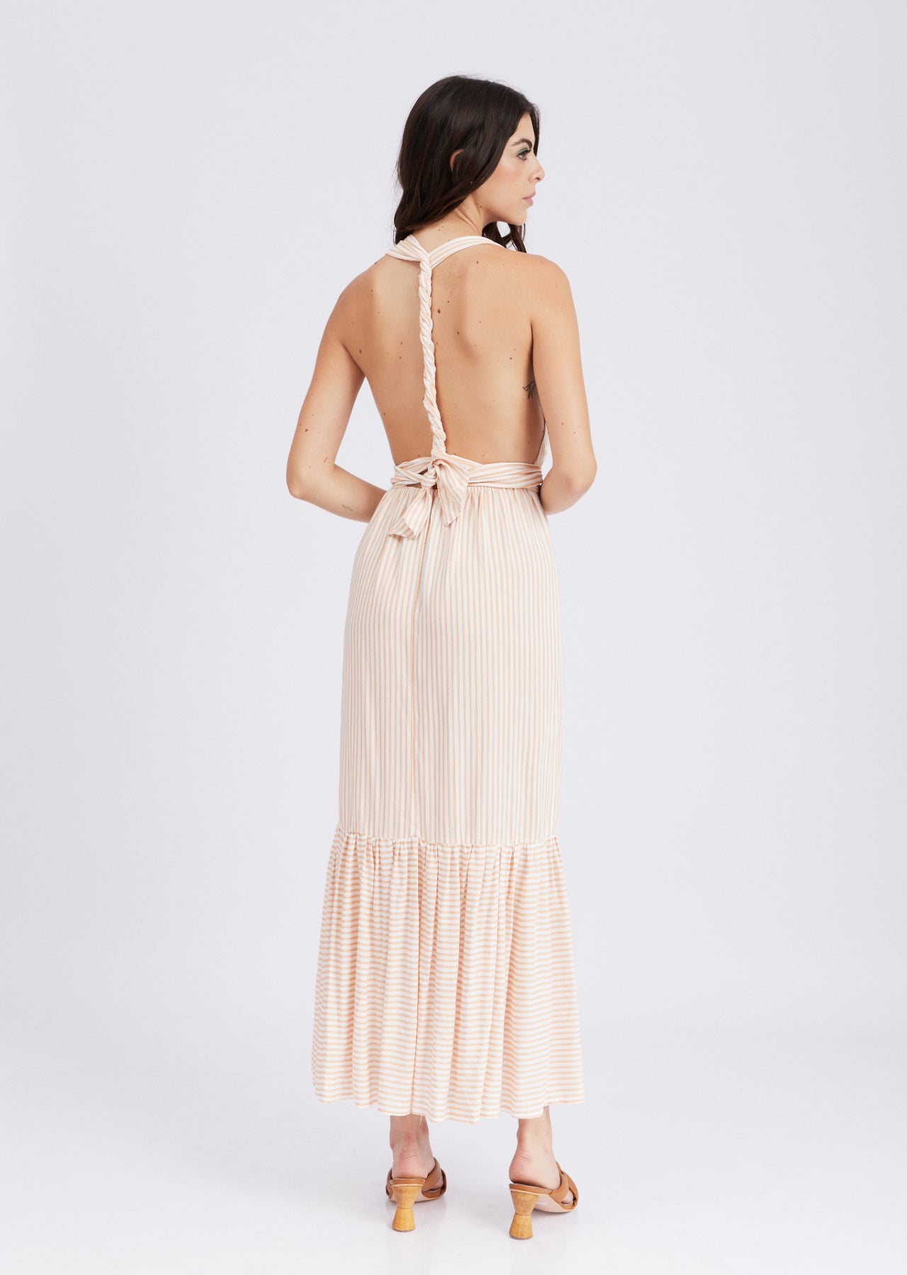 Vestido de algodon con hermosa caida. Espalda descurbiertas y seis formas distintas de ponerlas Modelo usa Talla Única.