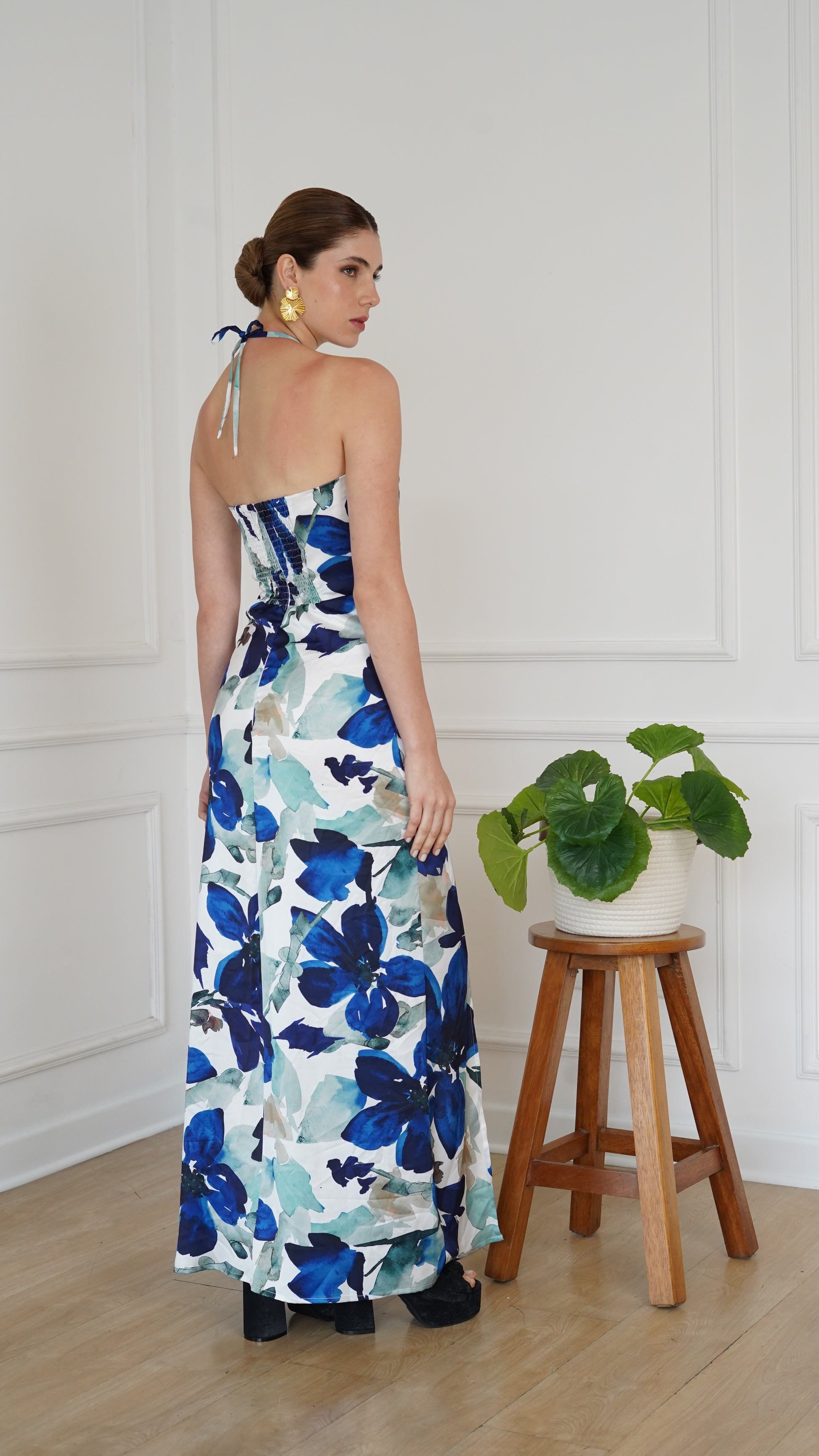 Hecho en gasa liviana, este vestido combina frescura y romanticismo.