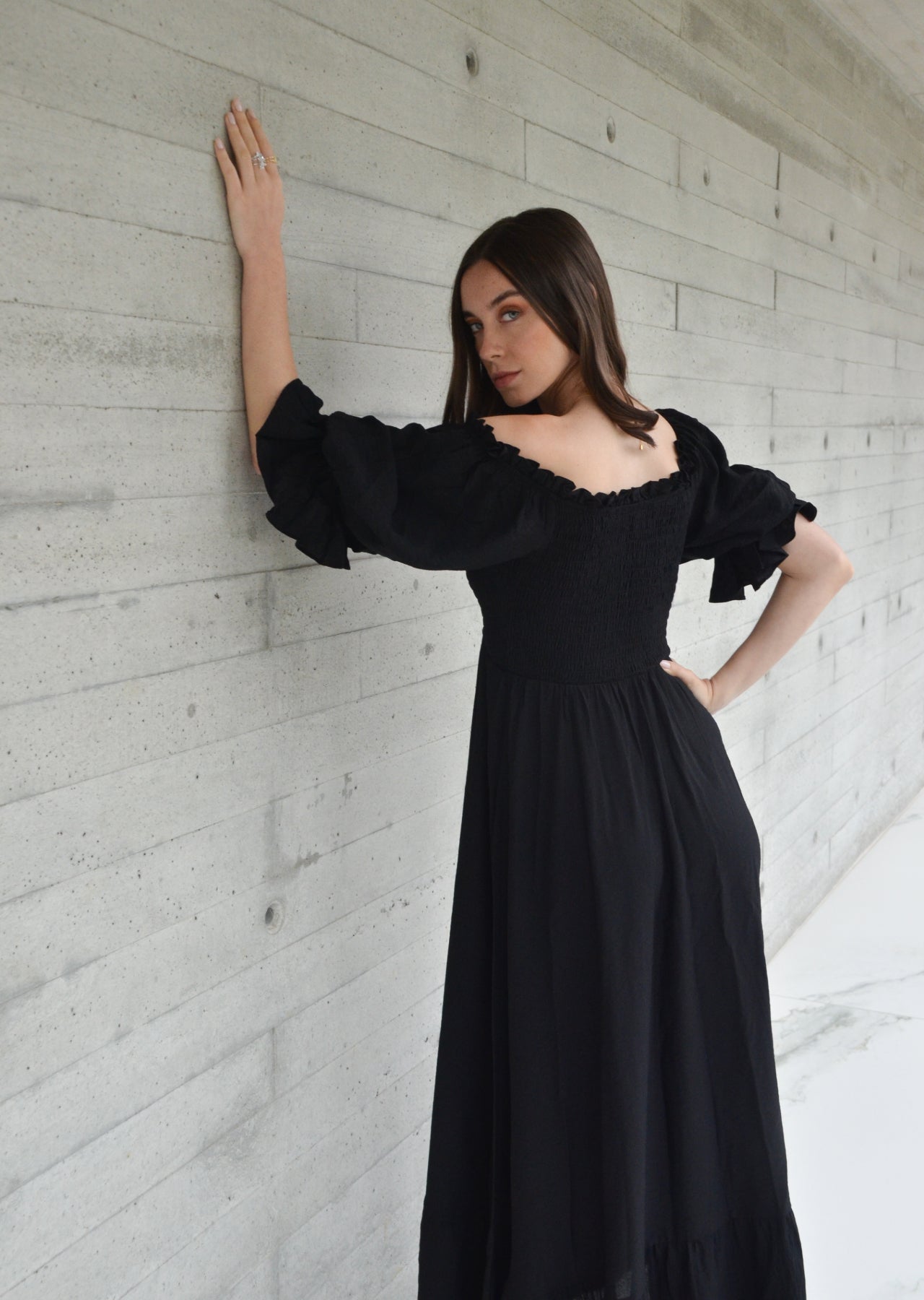 Vestido largo confeccionado en lino delicado con detalles sutiles. Corte recto que estiliza con elegancia, escote discreto y caída fluida que acompaña el movimiento. Su diseño atemporal realza la silueta con sofisticación y es ideal para eventos formales, cenas especiales o celebraciones nocturnas. Forrado para mayor comodidad.